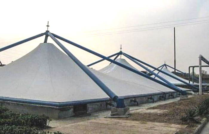 污水池加盖顾名思义就是在露天的污水池上方用材料覆盖起来,四周给它完全密封起来,常见的密封材料有阳光板,玻璃钢,反吊膜等,覆盖材料不同,密封性能,使用寿命也不一样。