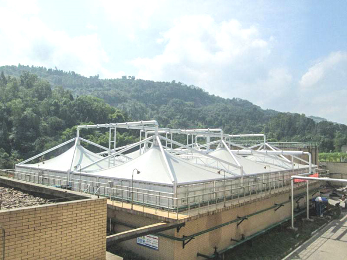 污水池加盖顾名思义就是在露天的污水池上方用材料覆盖起来,四周给它完全密封起来,常见的密封材料有阳光板,玻璃钢,反吊膜等,覆盖材料不同,密封性能,使用寿命也不一样。